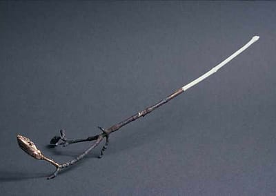 Gegoten takken van brons en porselein.