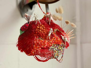 Koraal, kralen, beveiligingscamera, porselein