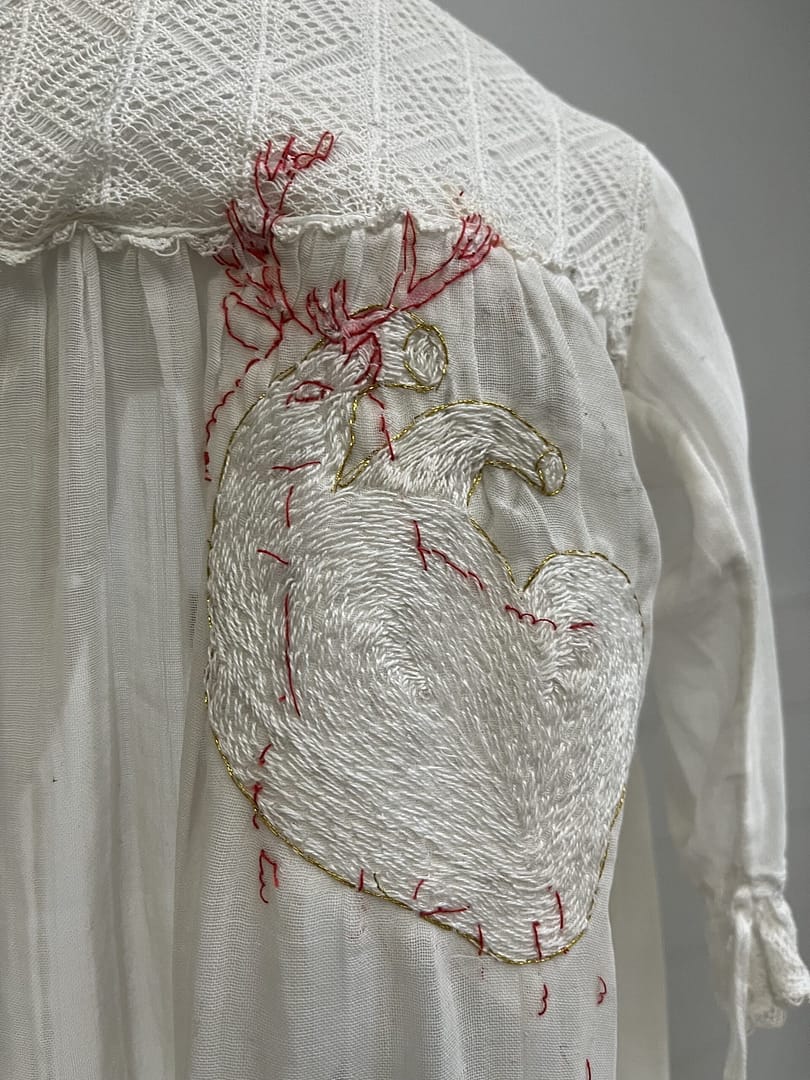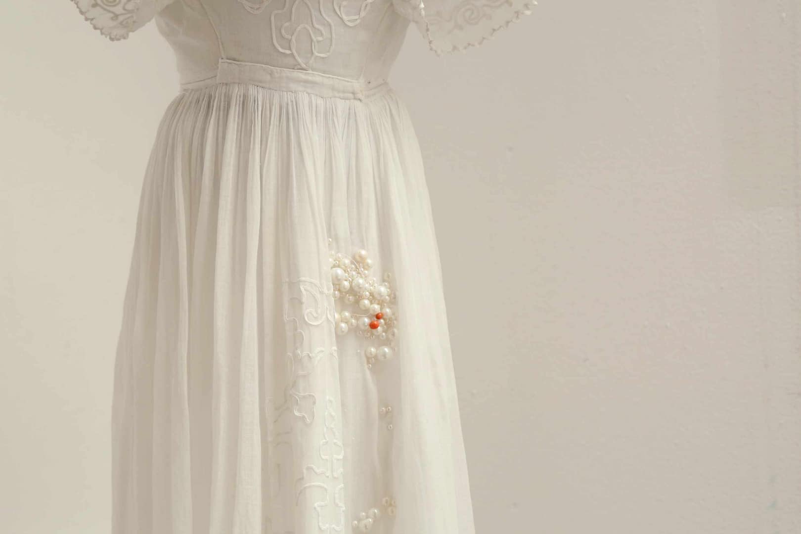 Doopjurk, wol en kralen en doopjurk met borduursel (hart)